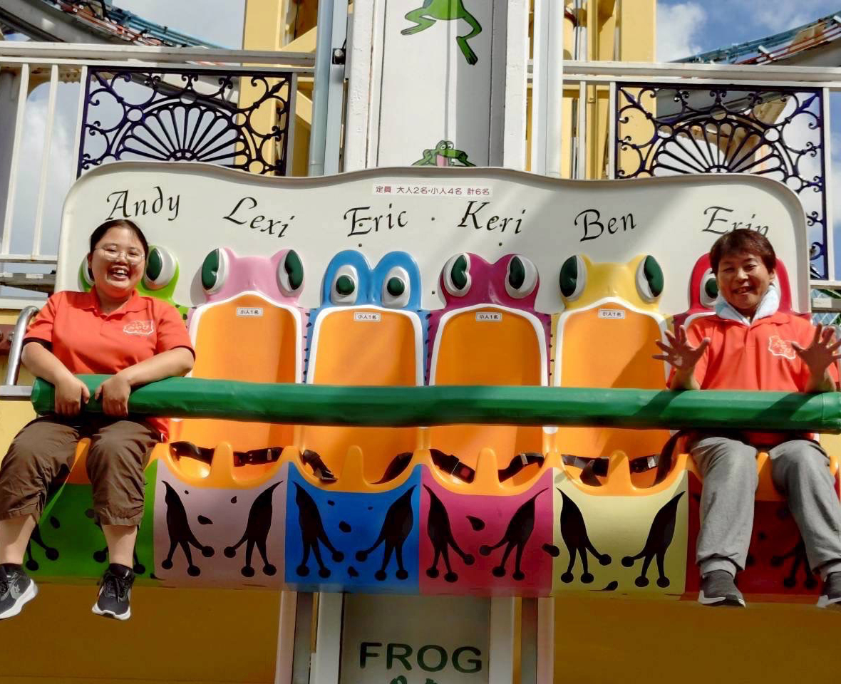みんな大好きジェットコースターを満喫!素敵な笑顔ですね~!遊んだ後はみんで飲み物を買って休憩です。