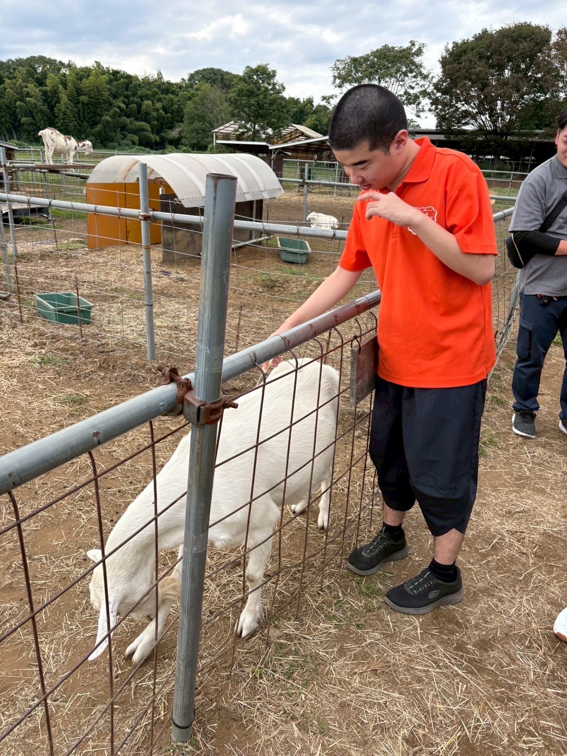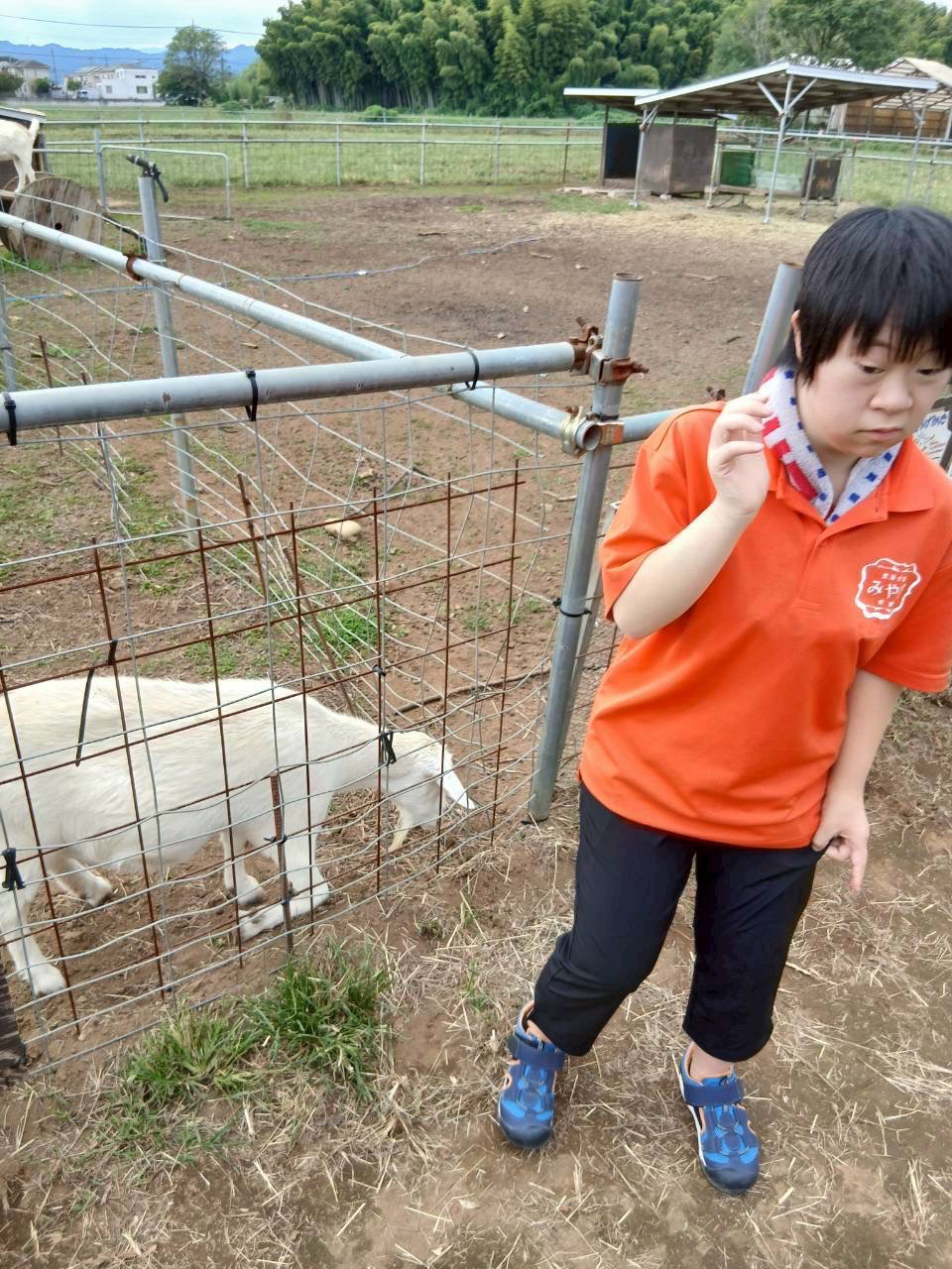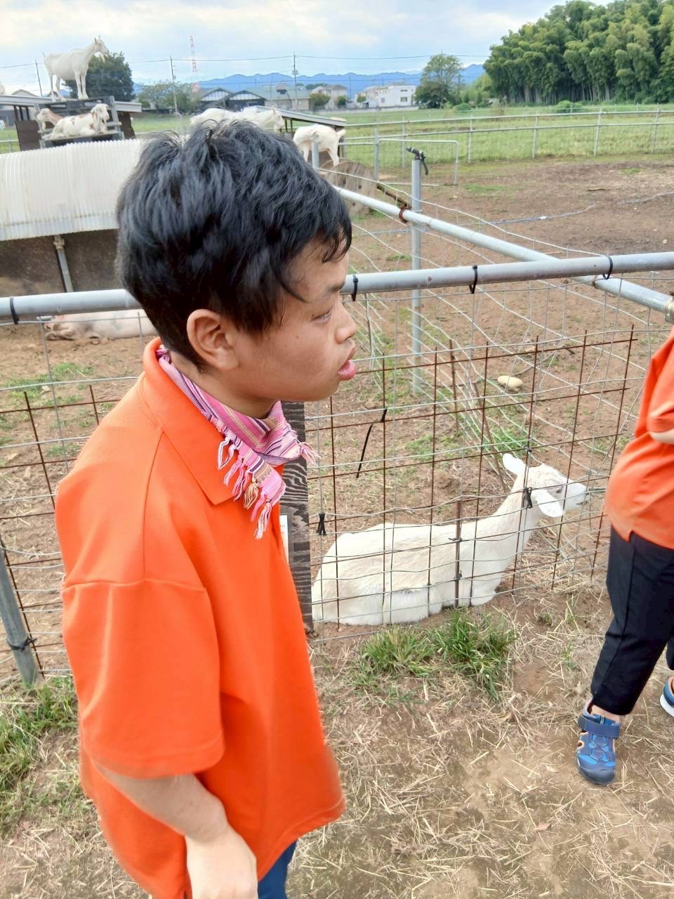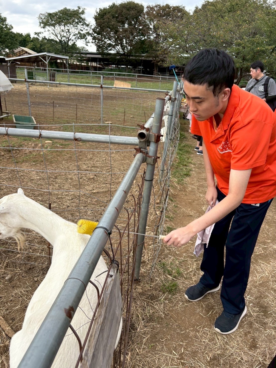 愛嬌のあるヤギさんに興味を持って,ブラシでゴシゴシしてあげていました♪